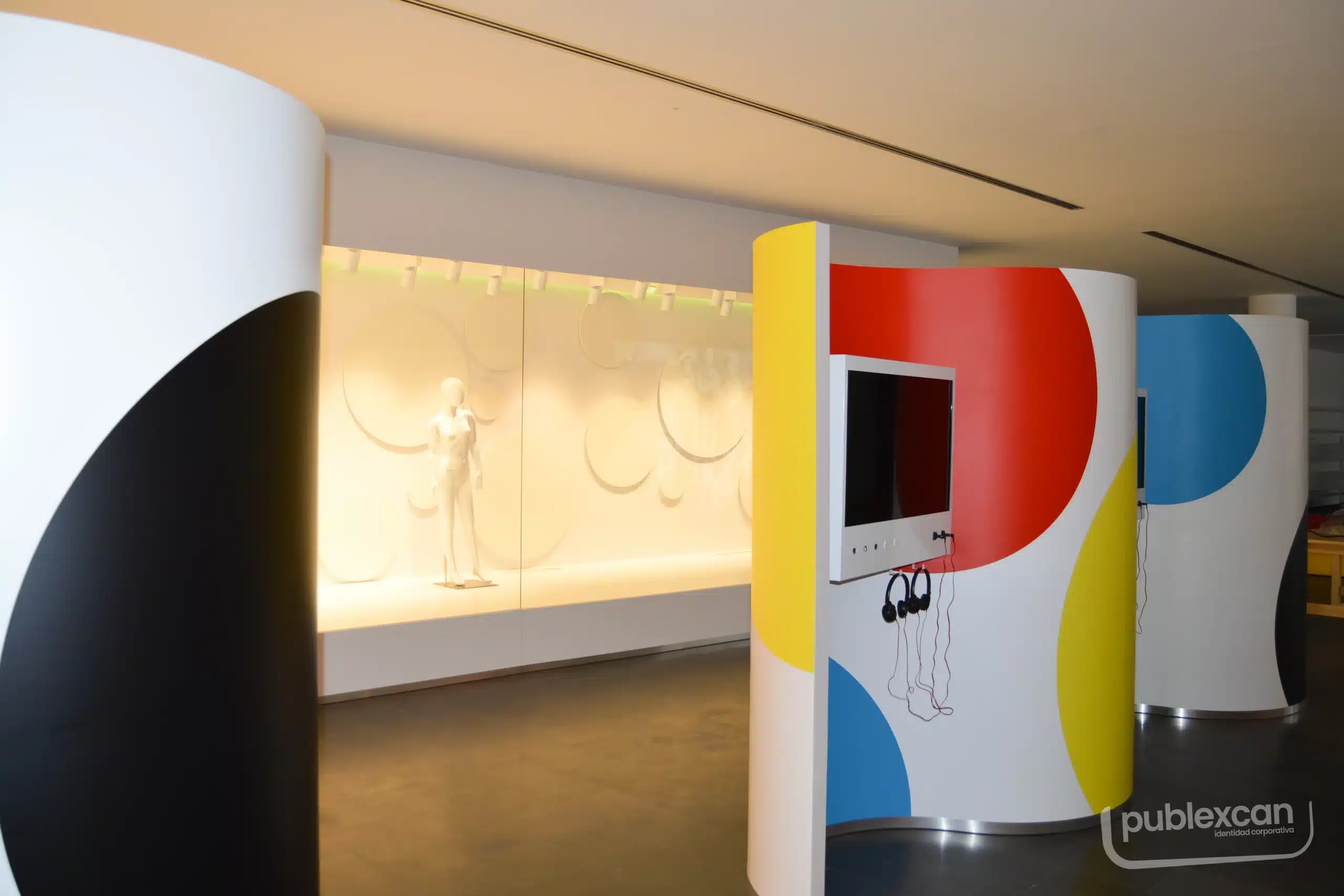 Fabricación de peanas expositoras de los vehículos y banderolas textiles.